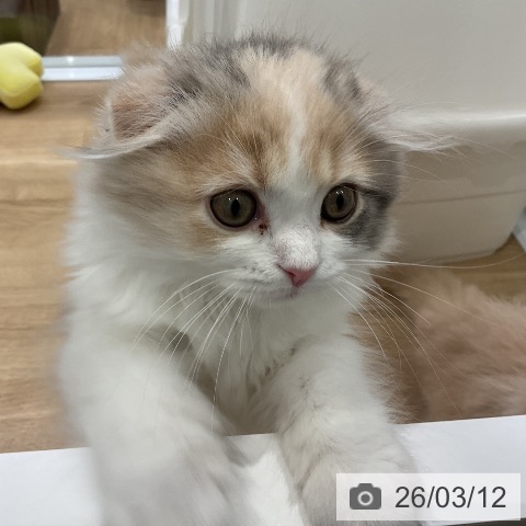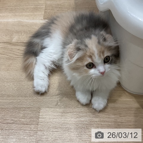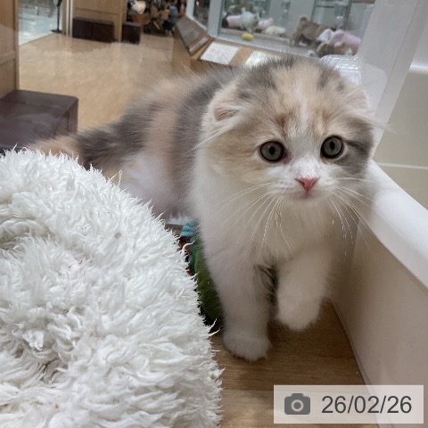スコティッシュフォールドの子猫詳細情報愛知県/2025年12月25日生まれ/女の子/ブルーパッチドタビーホワイトの子猫