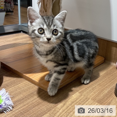アメリカンショートヘアーの子猫詳細情報東京都/2025年12月17日生まれ/男の子/シルバータビーの子猫
