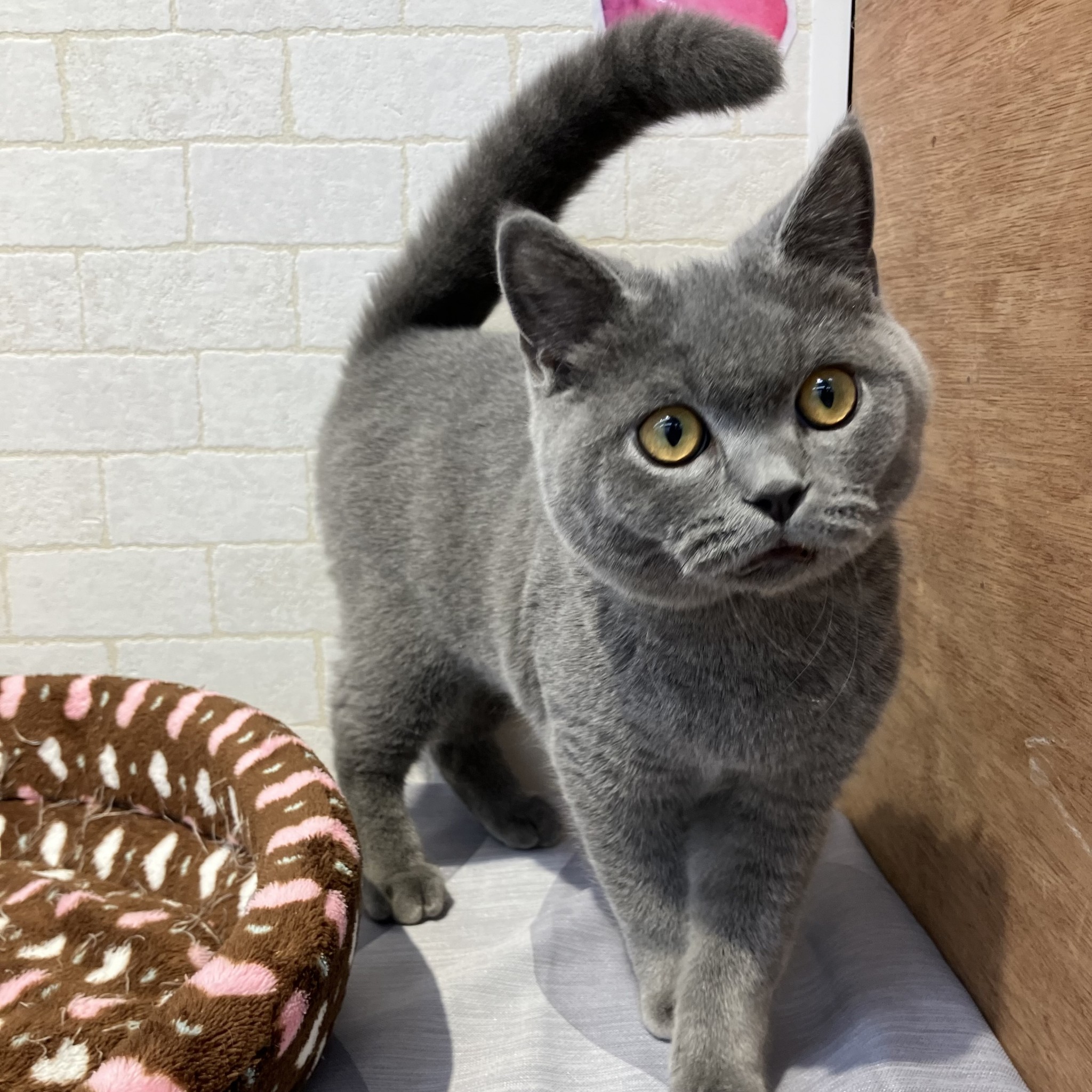 むちむちなお顔のかわいい男の子!好奇心旺盛で探検大好き、色んな場所に上ったり入ったりします 😆 退屈な時は「にゃあ」と短く鳴いてアピールしたり、すり寄って甘えに来てくれる瞬間がたまりません💕