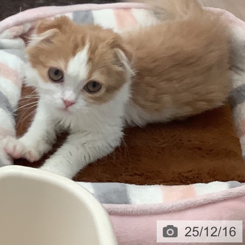 スコティッシュフォールドの子猫詳細情報大阪府/2025年9月28日生まれ/女の子/レッドタビーホワイトの子猫
