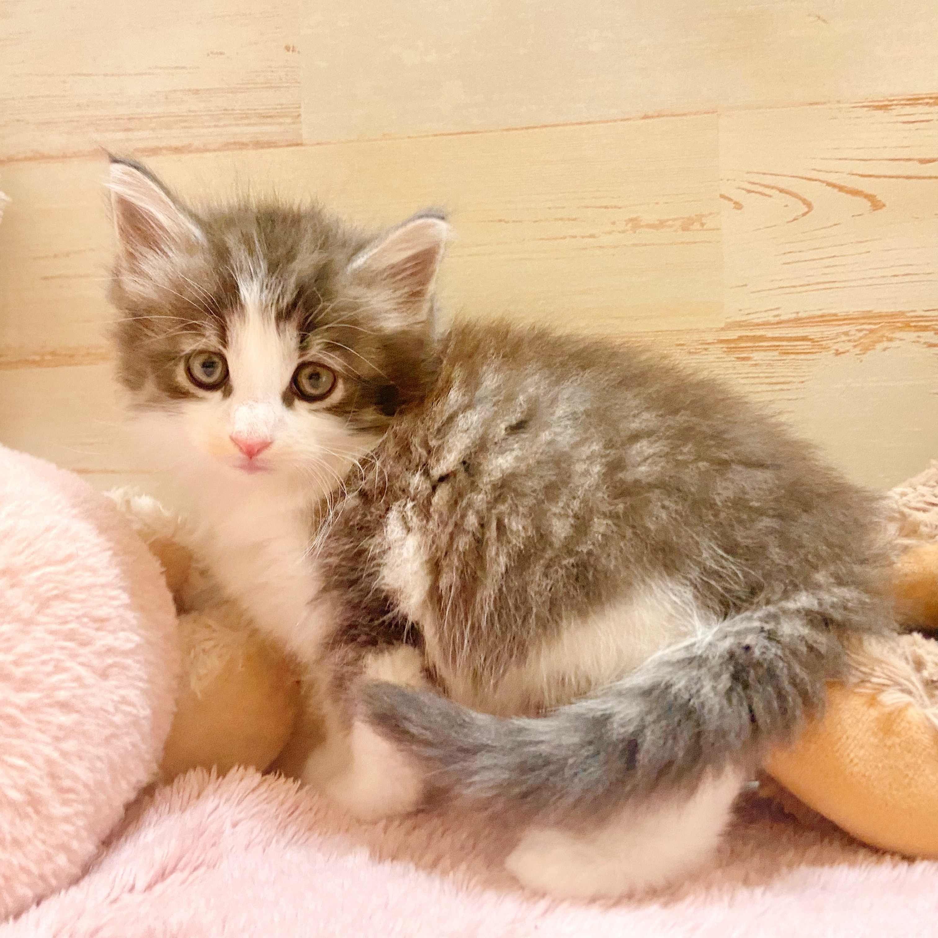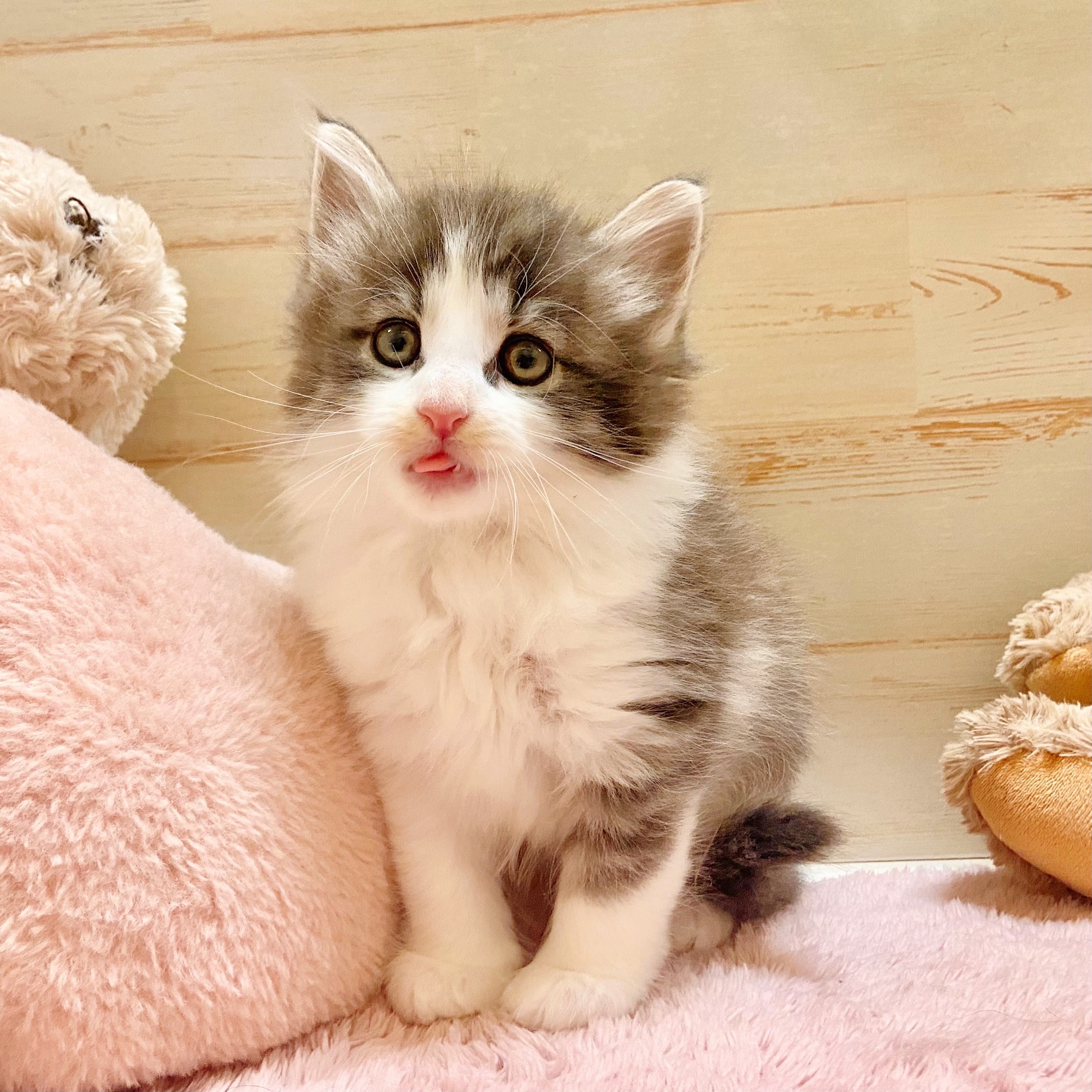 ノルウェージャンフォレストキャットの子猫詳細情報兵庫県/2025年8月5日生まれ/男の子/シルバータビーホワイトの子猫