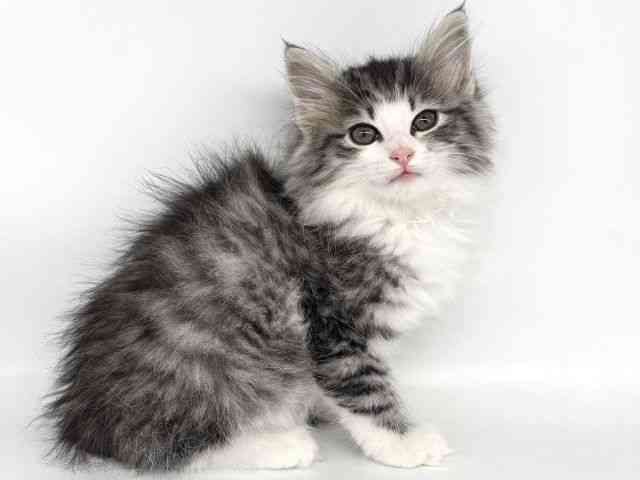 ノルウェージャンフォレストキャットの子猫詳細情報大阪府/2025年11月21日生まれ/女の子/シルバーパッチドタビーホワイトの子猫