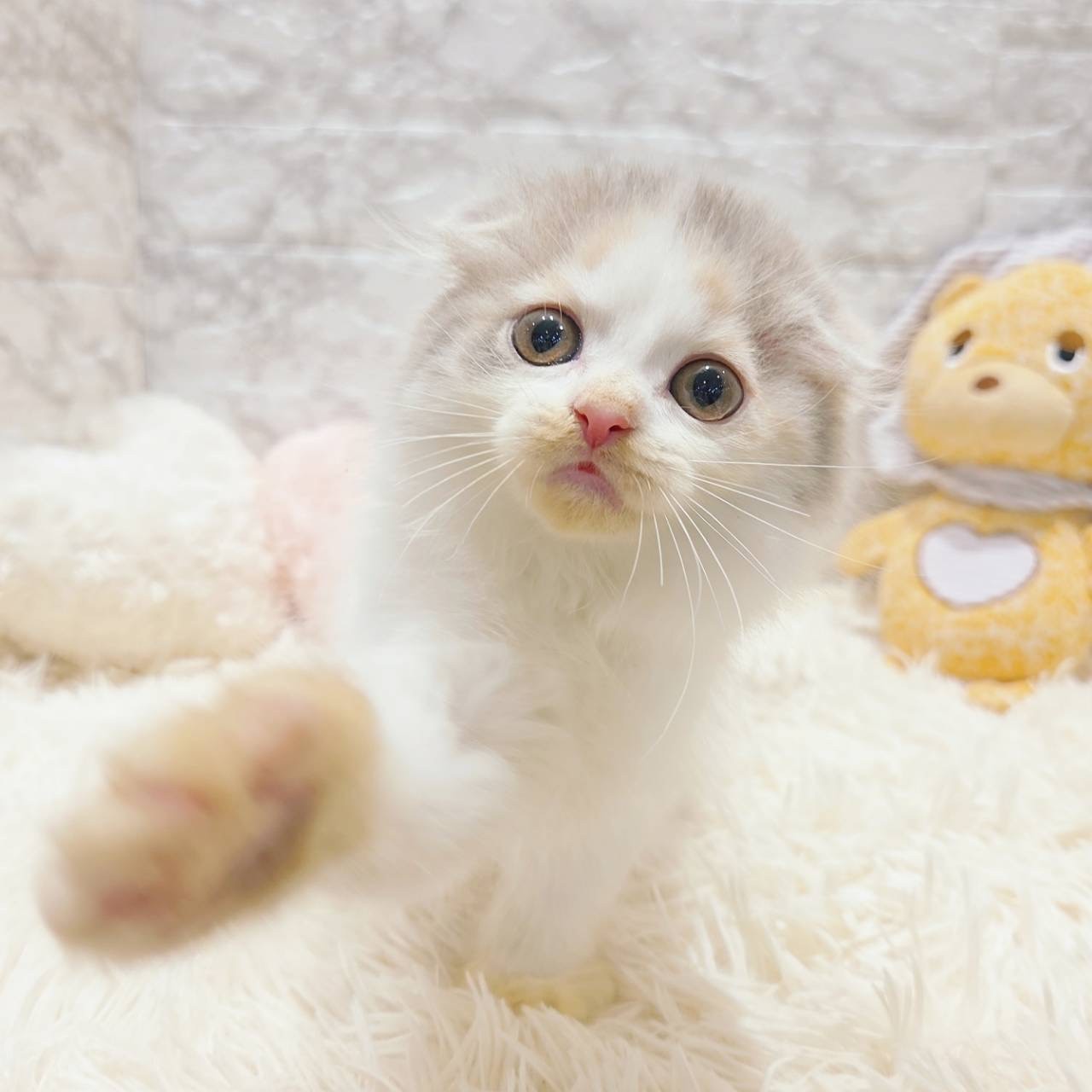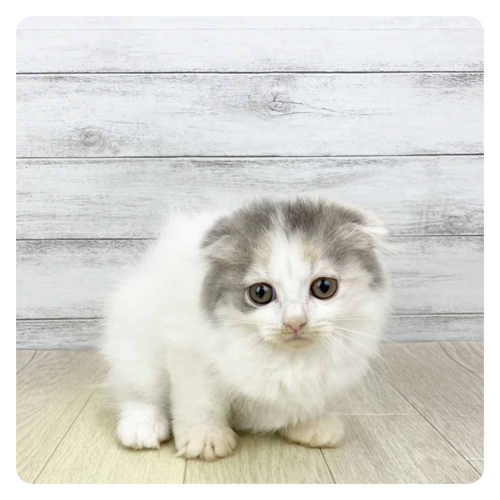 スコティッシュフォールドの子猫詳細情報愛知県/2025年9月21日生まれ/女の子/ブルーパッチドタビーホワイトの子猫