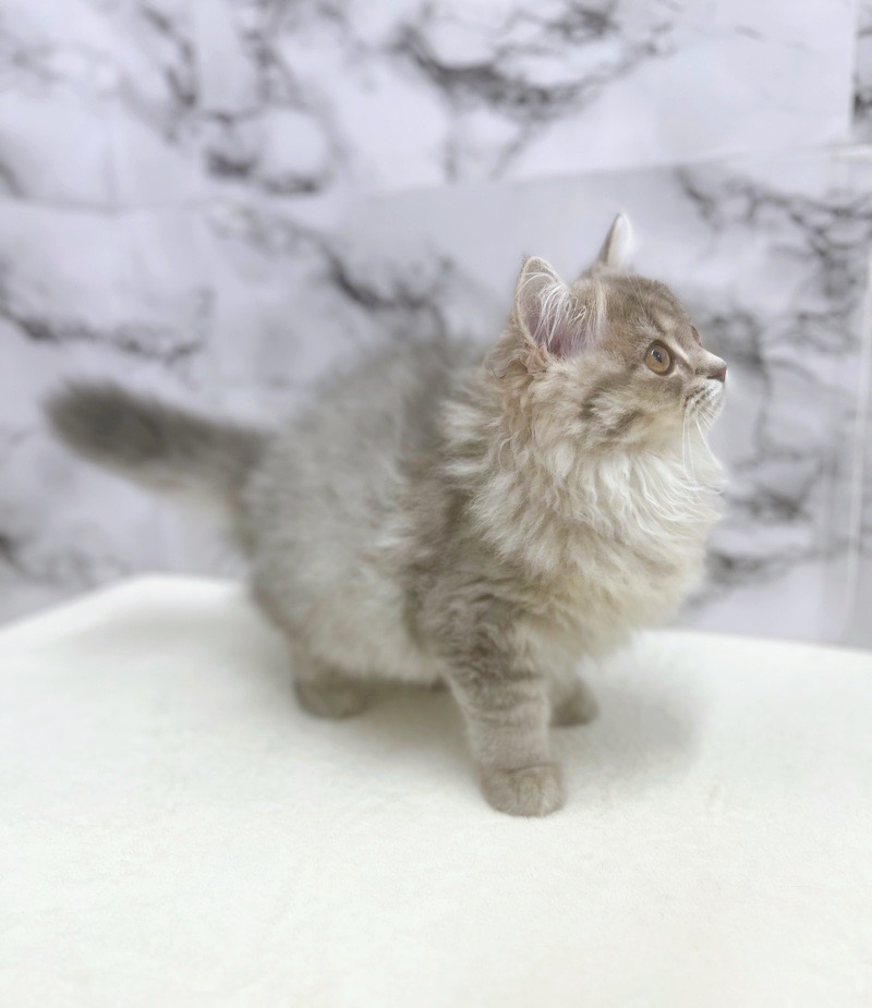 薄く上品にブレンドされたブルーとグレーのタビー柄に、ホワイトのアクセントがまるでアートのような美しさを放つラガマフィンの女の子♡