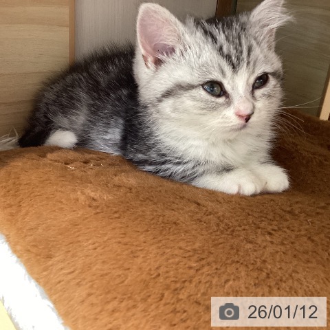 マンチカンの子猫詳細情報長野県/2025年11月7日生まれ/男の子/シルバータビーホワイトの子猫
