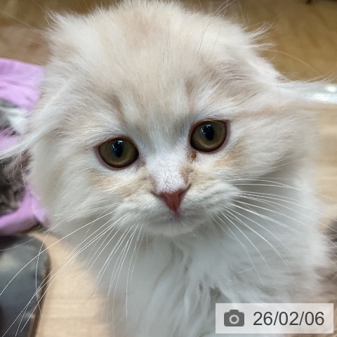 スコティッシュフォールドの子猫詳細情報埼玉県/2025年11月4日生まれ/女の子/クリームタビーホワイトの子猫
