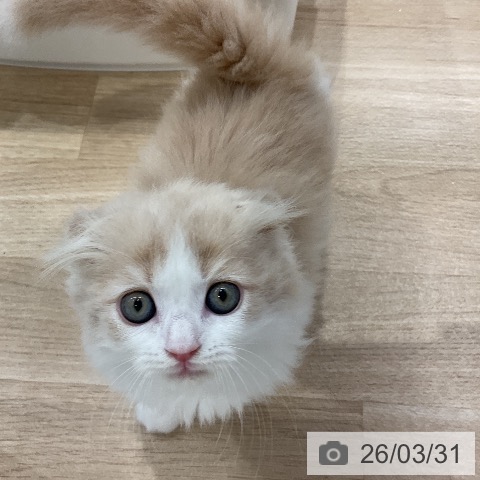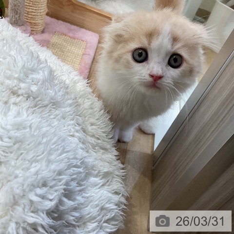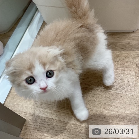 スコティッシュフォールドの子猫詳細情報愛知県/2026年1月29日生まれ/男の子/クリームタビーホワイトの子猫