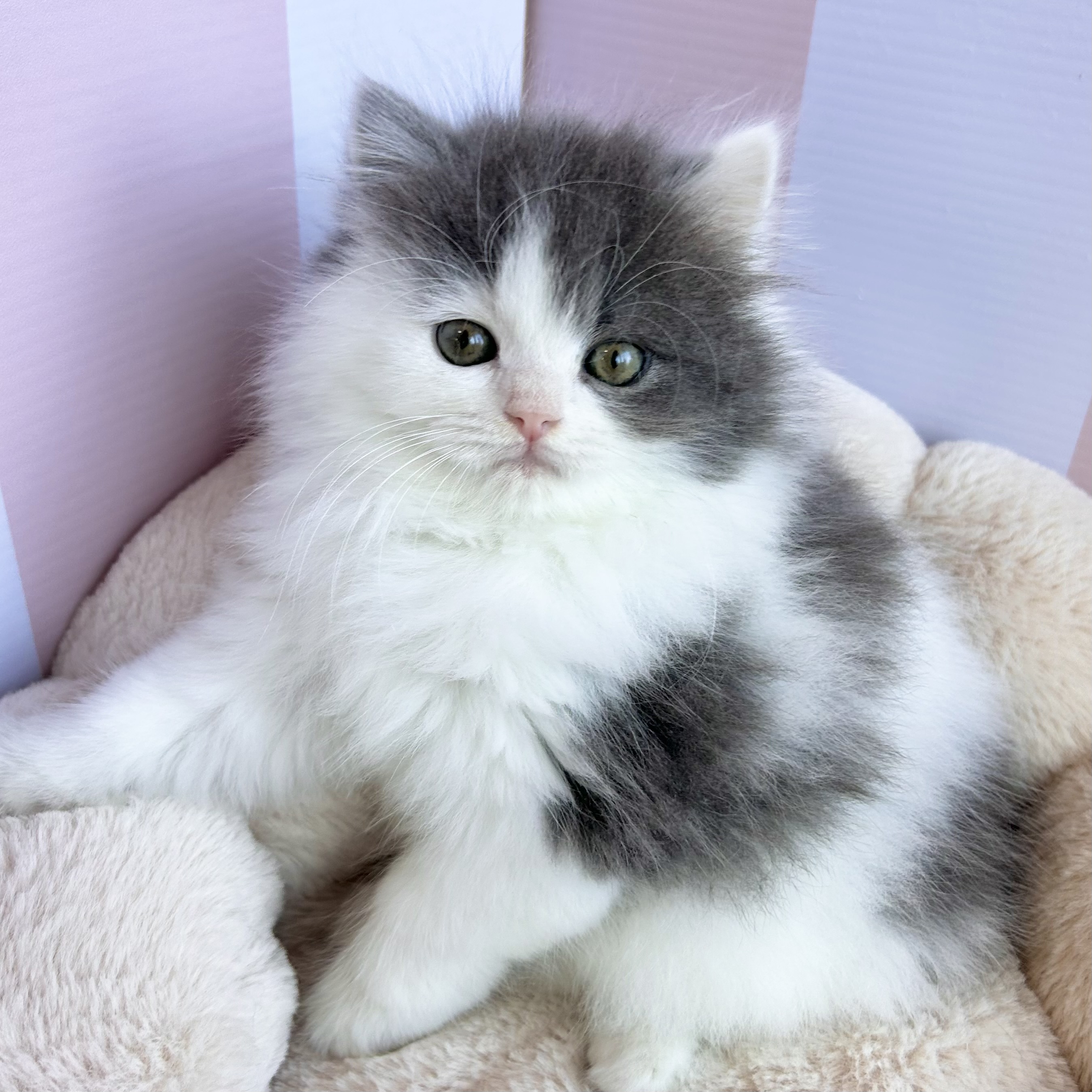 ブリティッシュロングヘアーの子猫詳細情報岡山県/2025年10月12日生まれ/女の子/ブルーホワイトの子猫