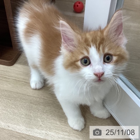 ノルウェージャンフォレストキャットの子猫詳細情報京都府/2025年8月22日生まれ/男の子/レッドタビーホワイトの子猫