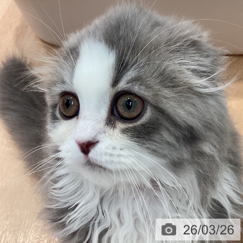 | 毛色 | ブルータビーホワイト |