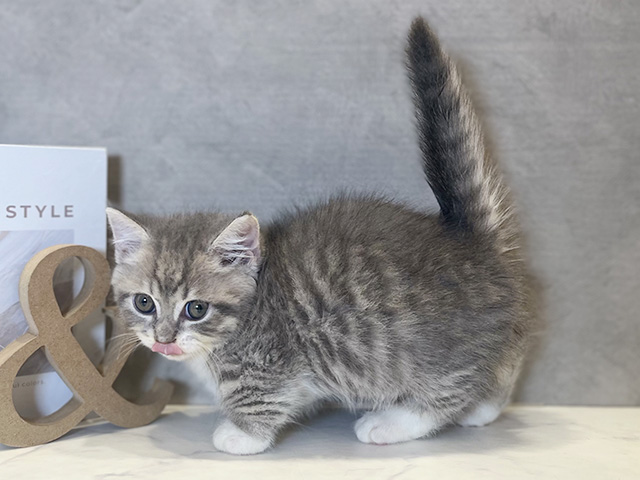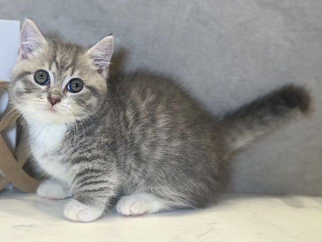 マンチカンの子猫詳細情報東京都/2025年7月24日生まれ/男の子/ブルータビーホワイトの子猫