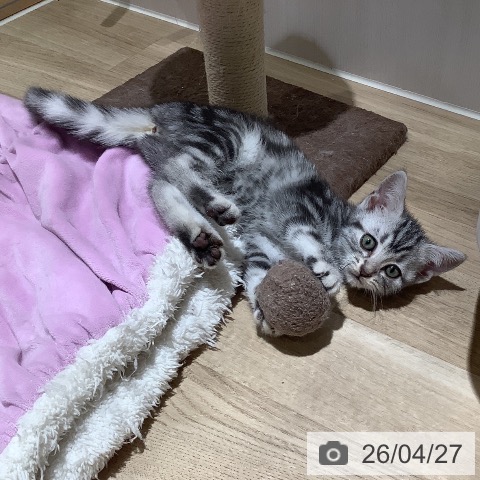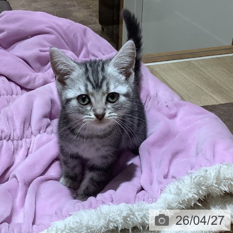 アメリカンショートヘアーの子猫詳細情報大阪府/2026年2月9日生まれ/女の子/シルバータビーの子猫