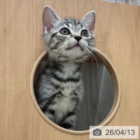 アメリカンショートヘアーの子猫詳細情報長野県/2026年2月1日生まれ/女の子/シルバータビーの子猫