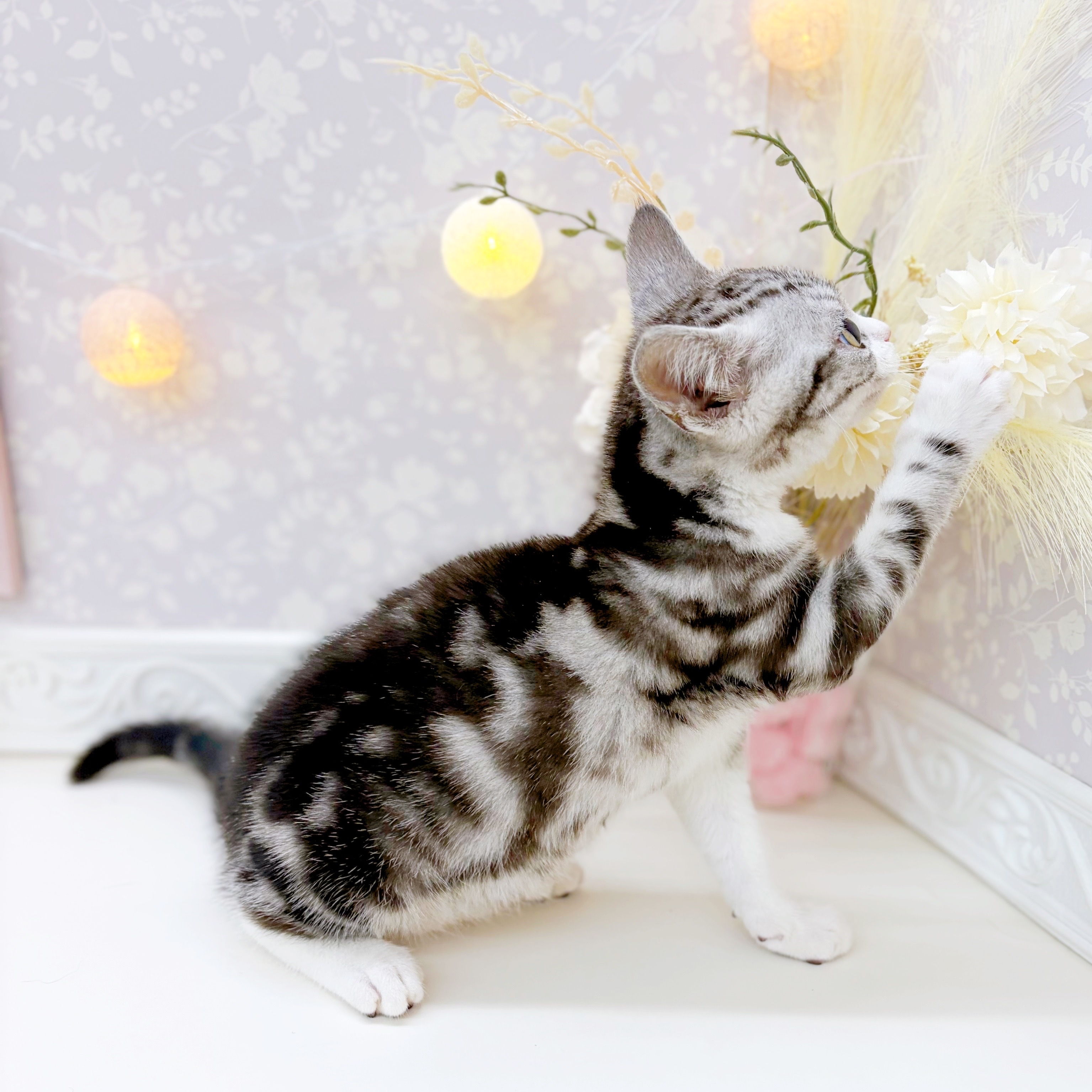 アメリカンショートヘアーの子猫詳細情報富山県/2025年10月18日生まれ/男の子/シルバータビーホワイトの子猫