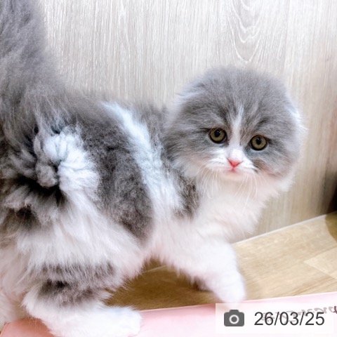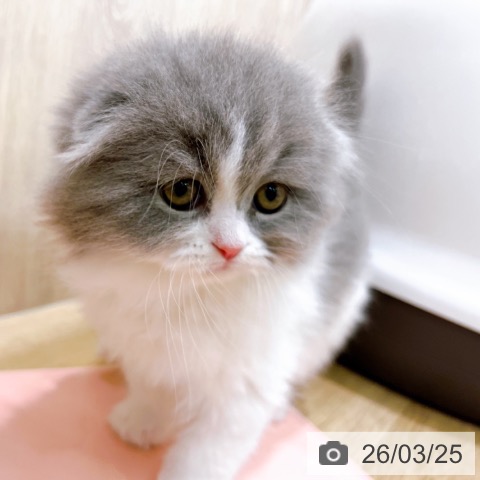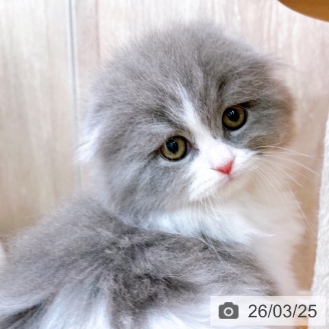 スコティッシュフォールドの子猫詳細情報大阪府/2026年1月20日生まれ/女の子/ブルーホワイトの子猫