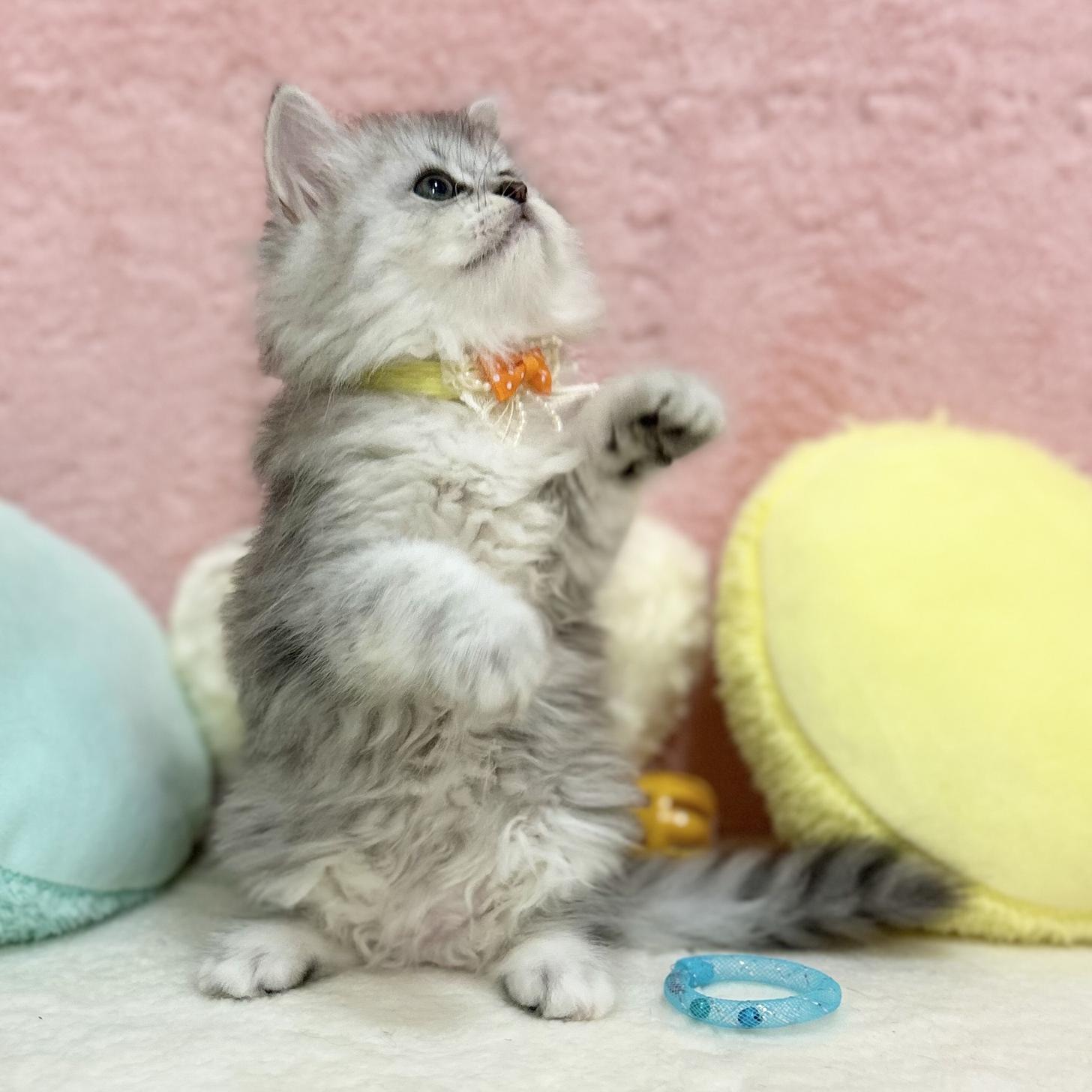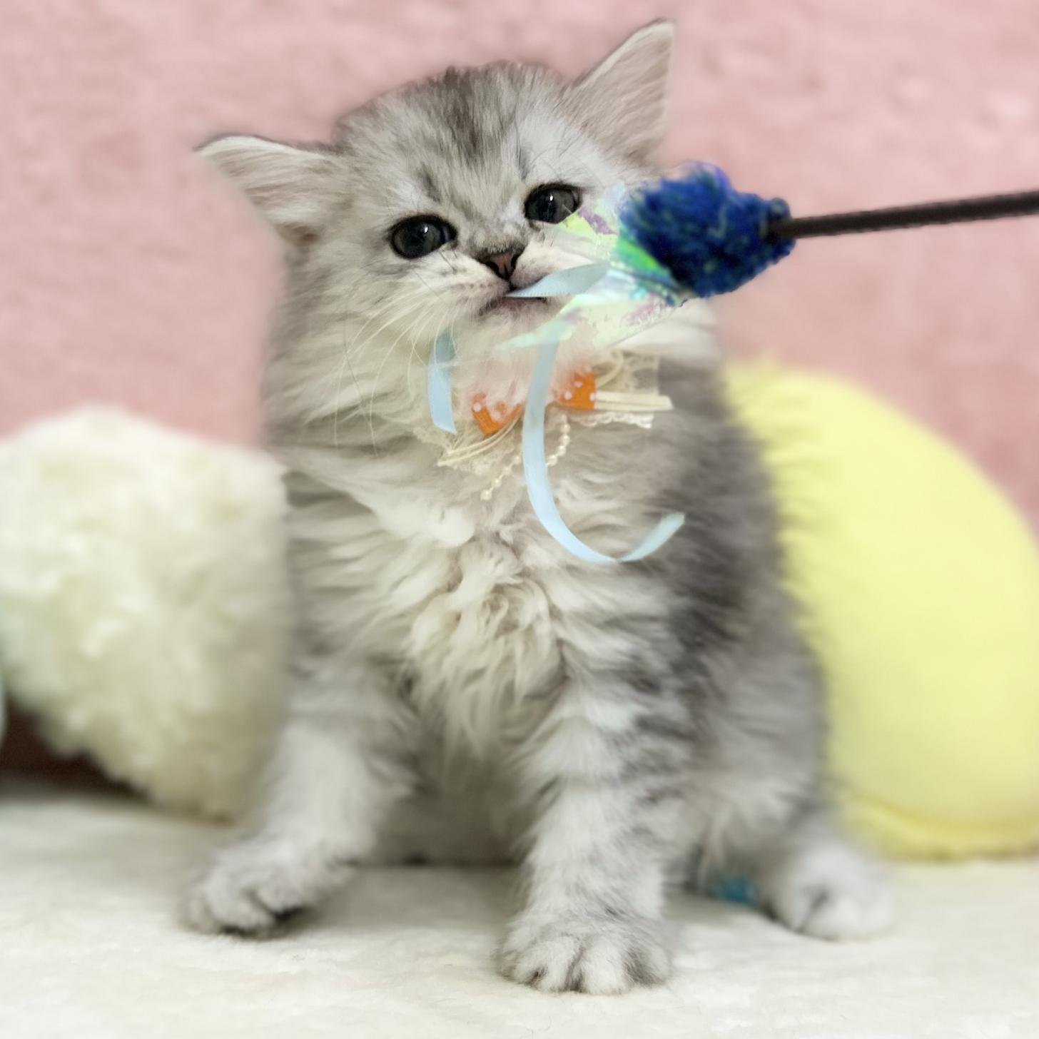 兄妹の中では唯一の長足ちゃん💡はっきりとしたシルバーカラーのもふもふな毛並みは手触りバツグンです♪