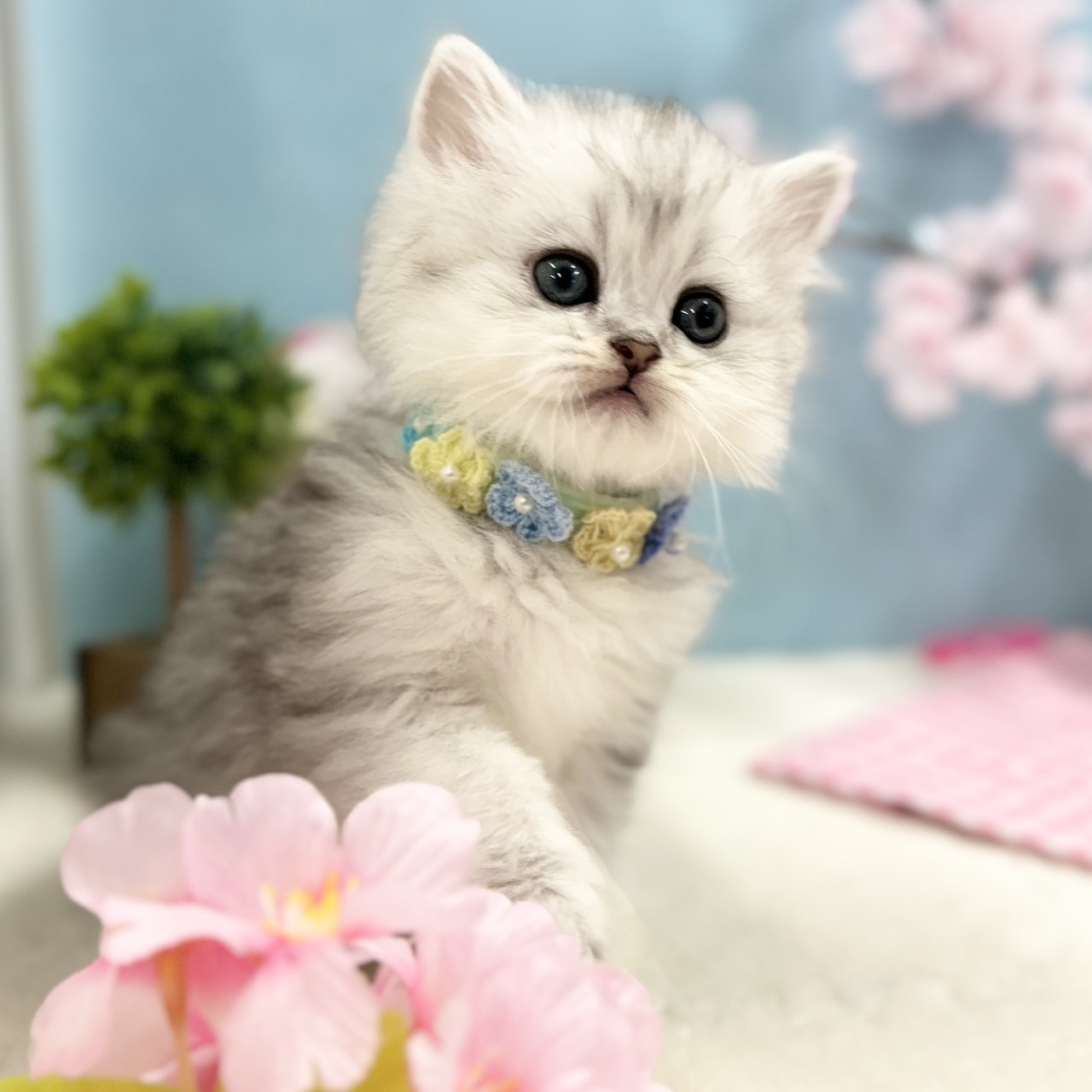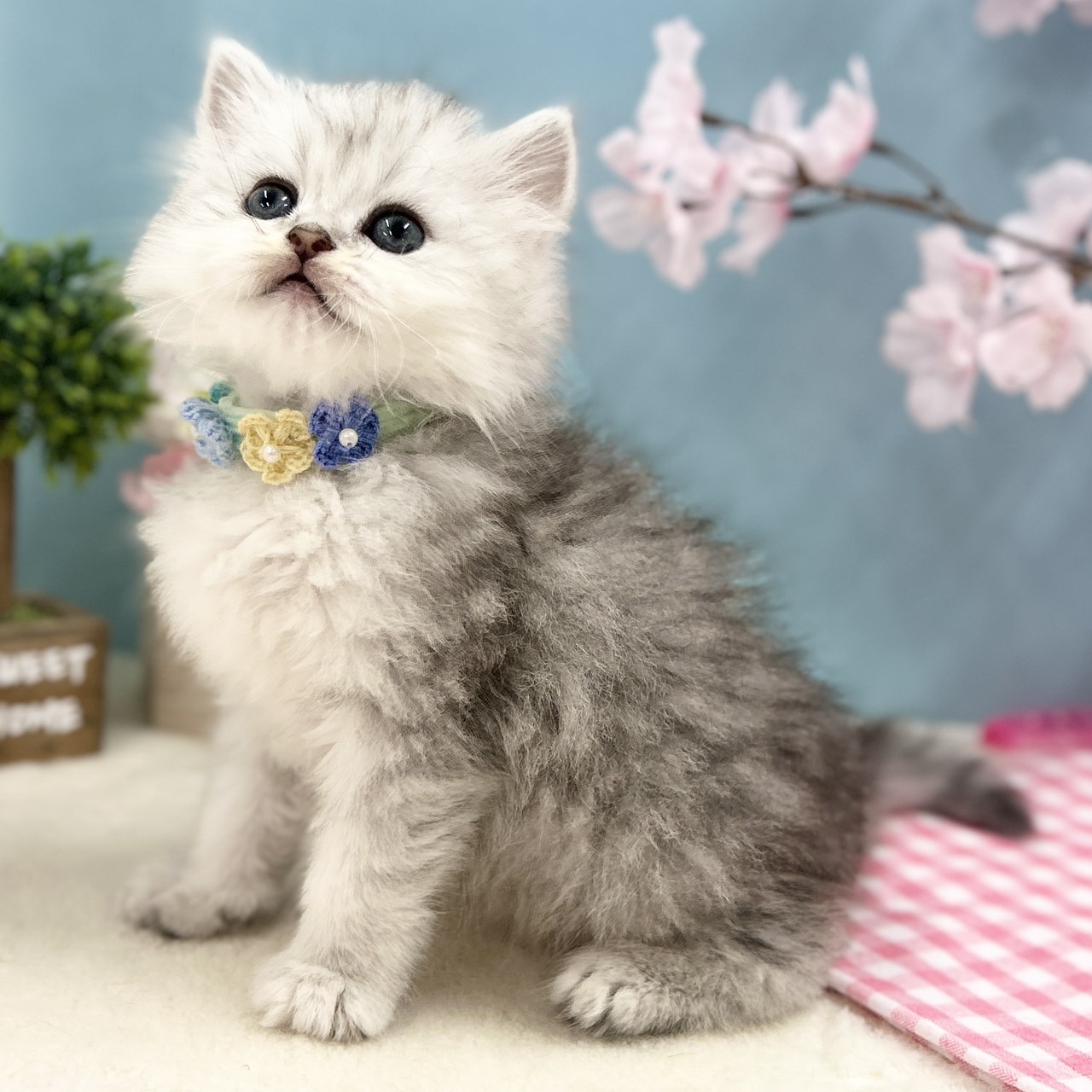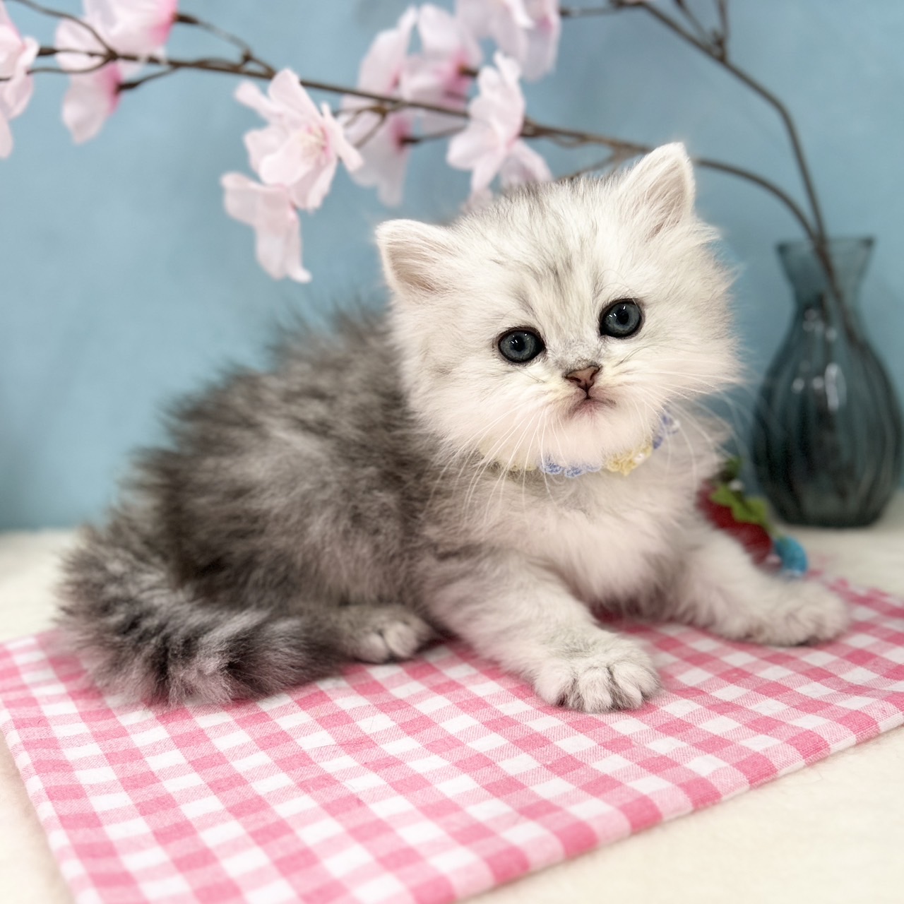 淡いシルバーが上品に映える繊細な被毛と、透明感のある美しい毛並みが魅力のきれい系の男の子で、優しいお顔立ちも印象的です💡