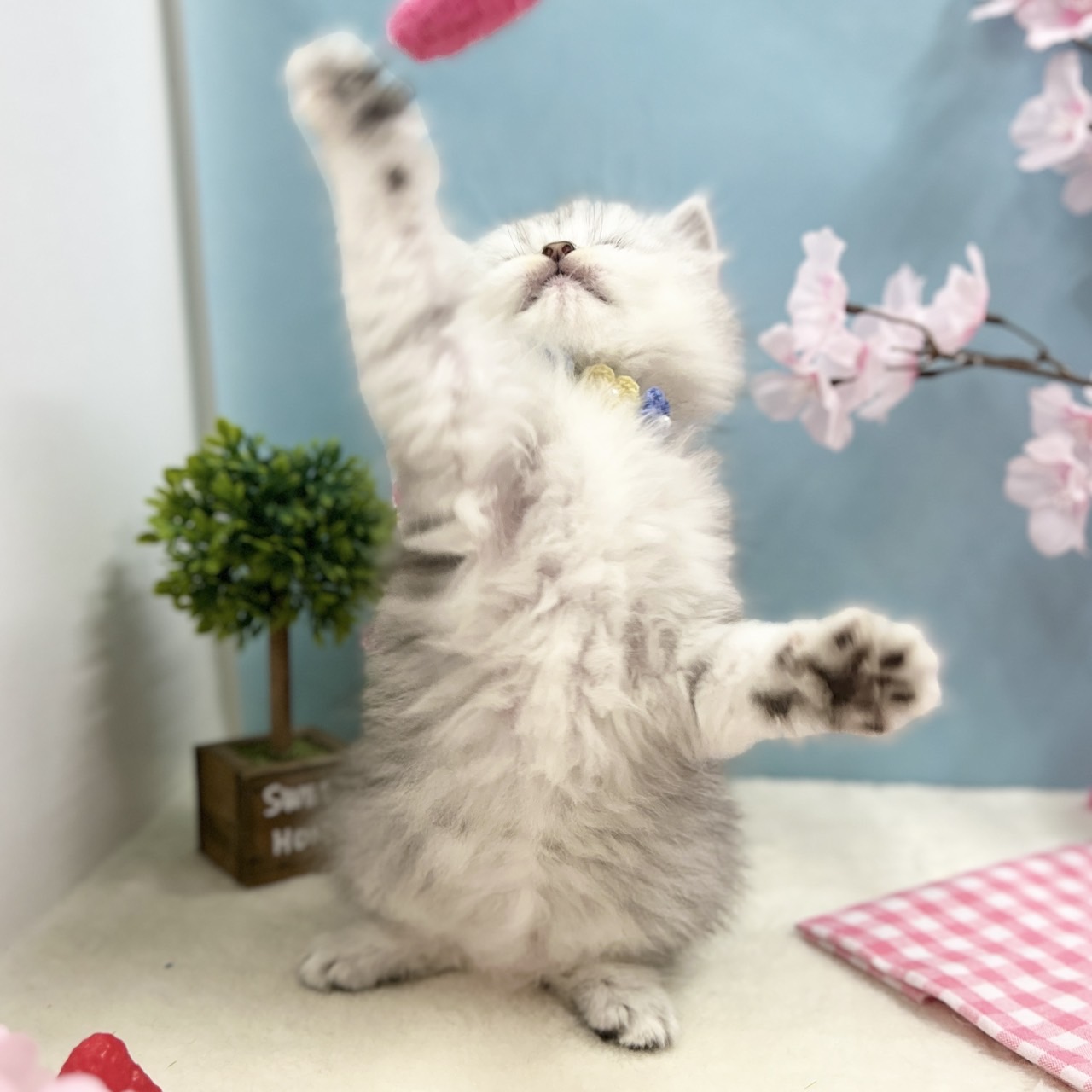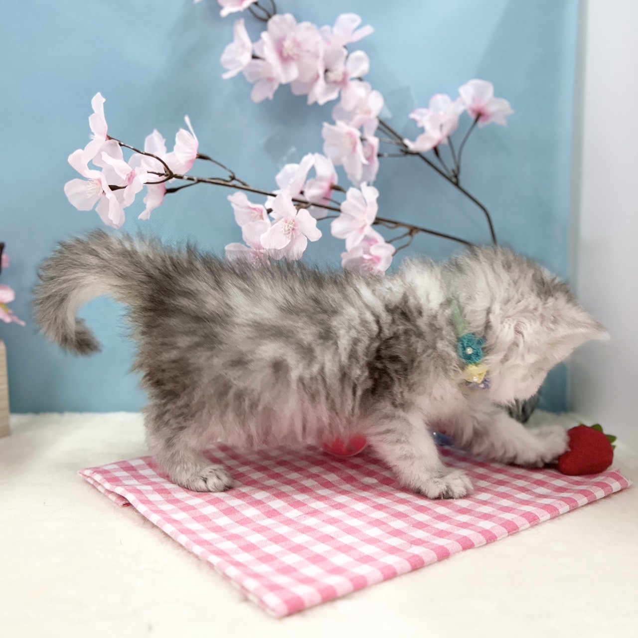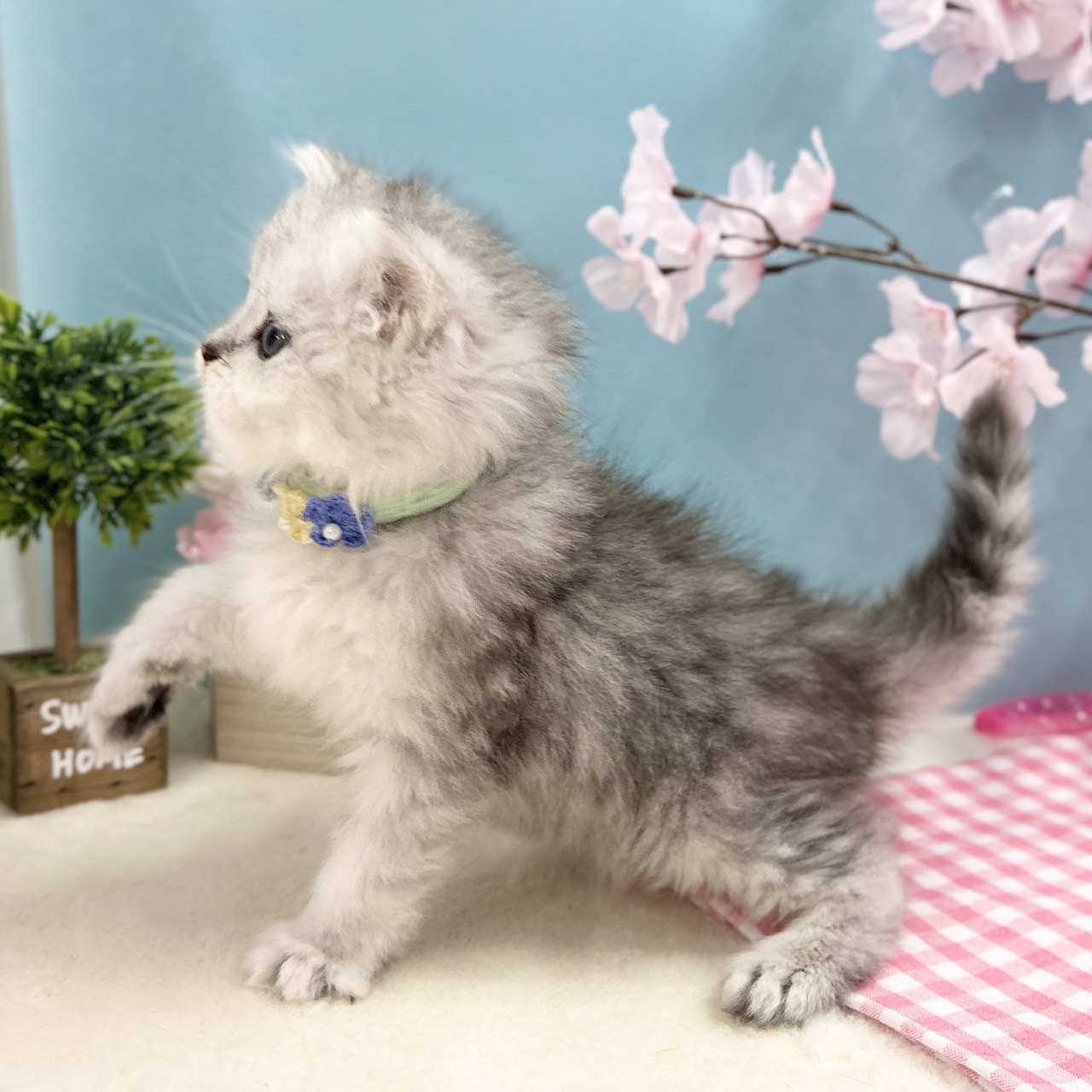 淡いシルバーが上品に映える繊細な被毛と、透明感のある美しい毛並みが魅力のきれい系の男の子で、優しいお顔立ちも印象的です💡