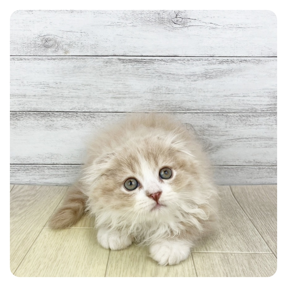 スコティッシュフォールドの子猫詳細情報長野県/2025年9月25日生まれ/男の子/クリームタビーホワイトの子猫