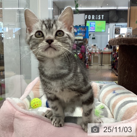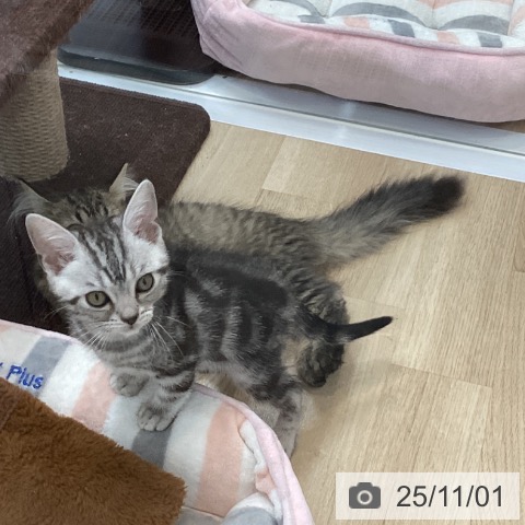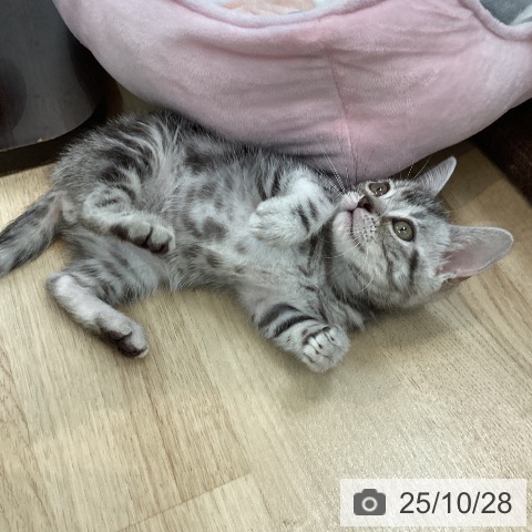 アメリカンショートヘアーの子猫詳細情報東京都/2025年8月7日生まれ/男の子/シルバータビーの子猫