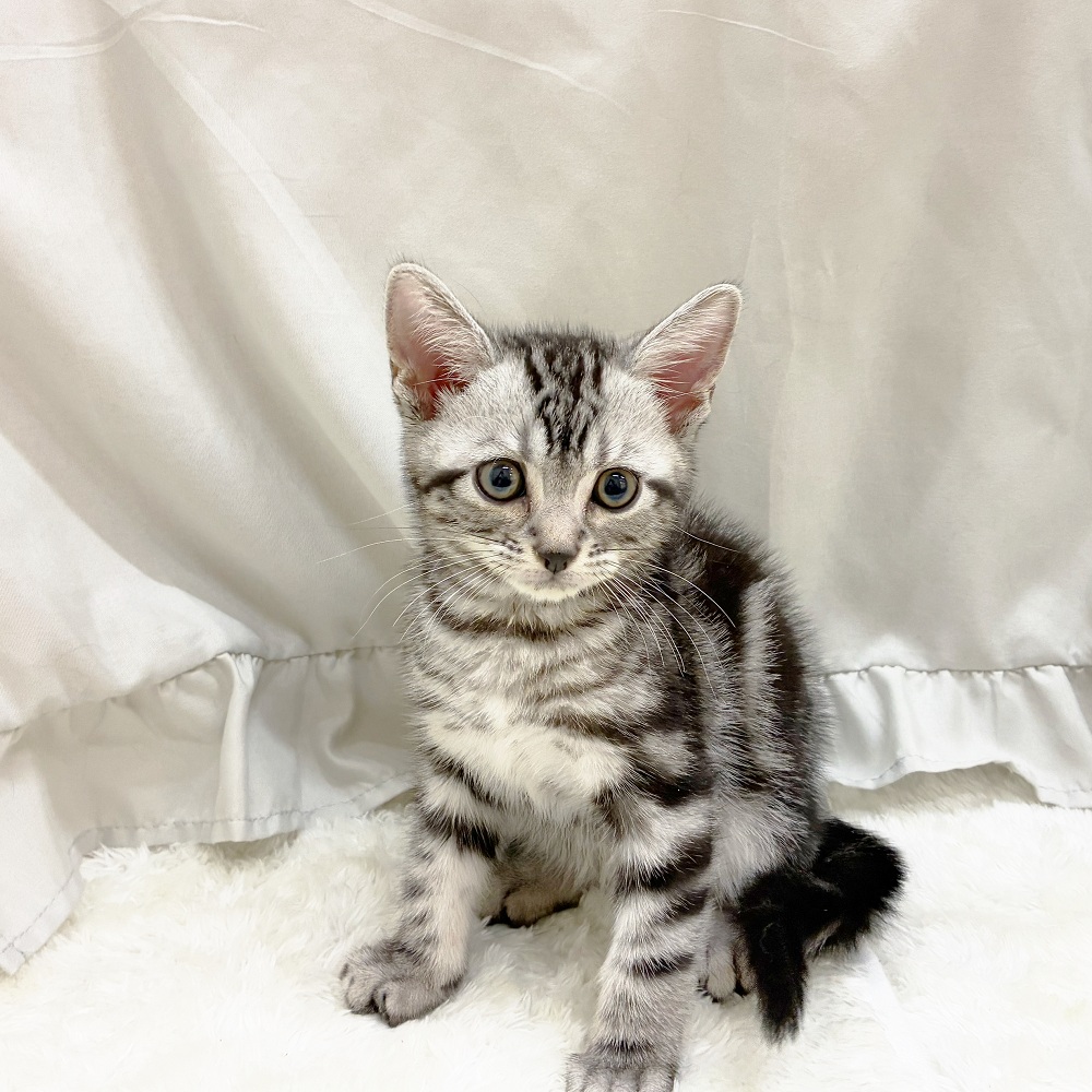 アメリカンショートヘアーの子猫詳細情報愛知県/2025年8月4日生まれ/男の子/シルバータビーの子猫