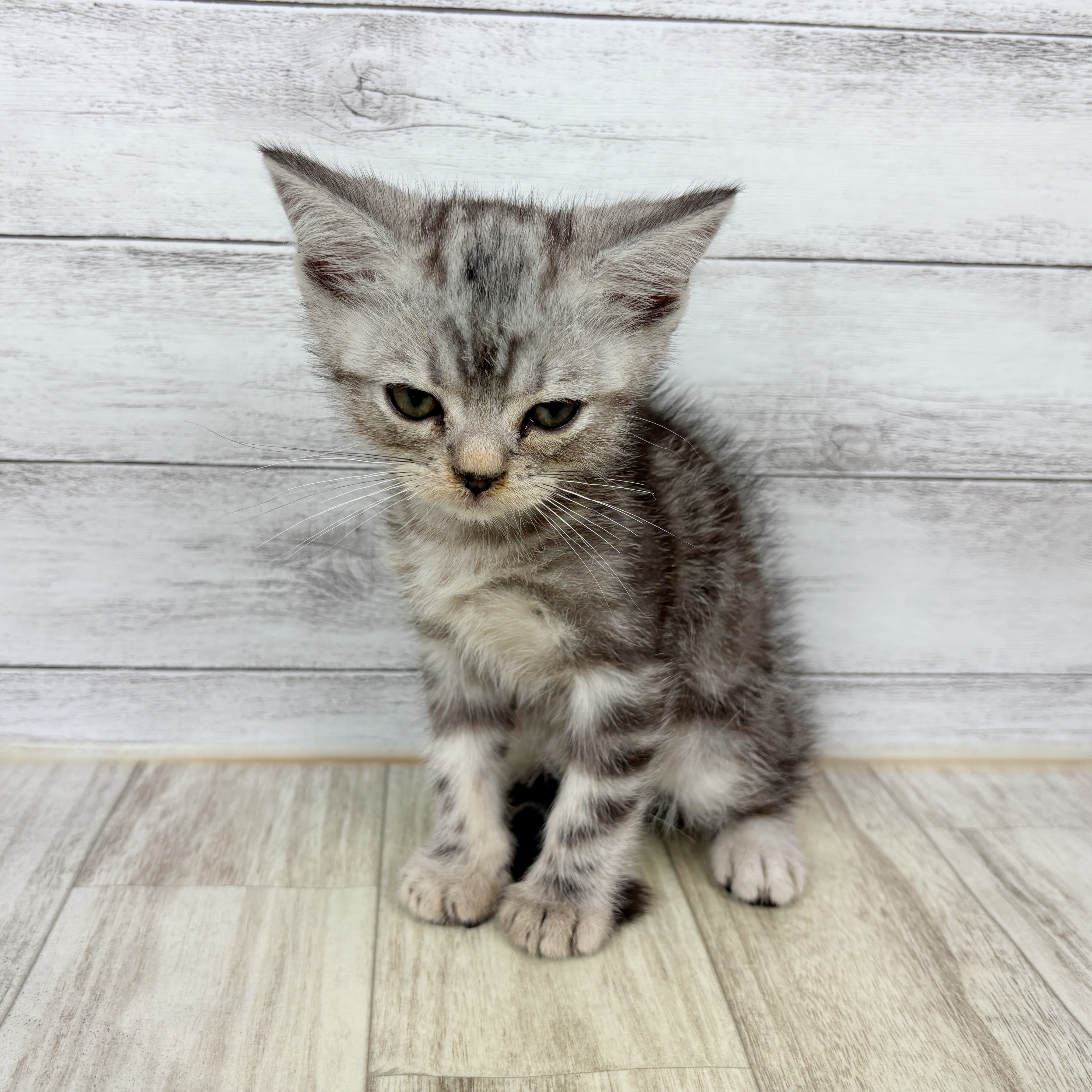 アメリカンショートヘアーの子猫詳細情報石川県/2025年10月15日生まれ/男の子/シルバータビーの子猫