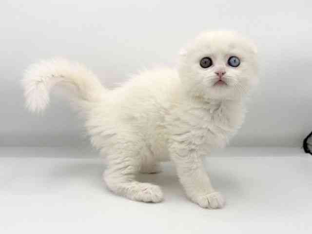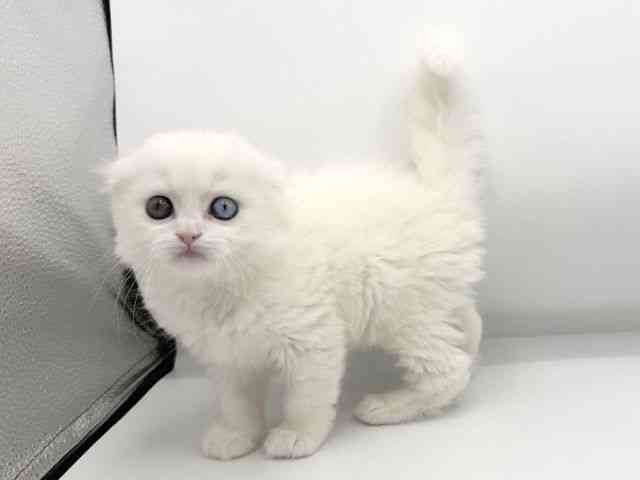 真っ白でオッドアイの珍しいスコちゃんです!