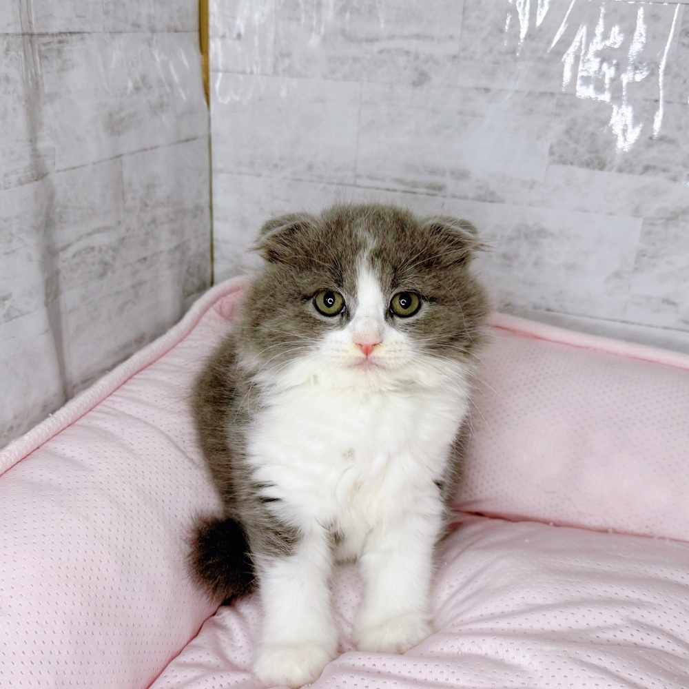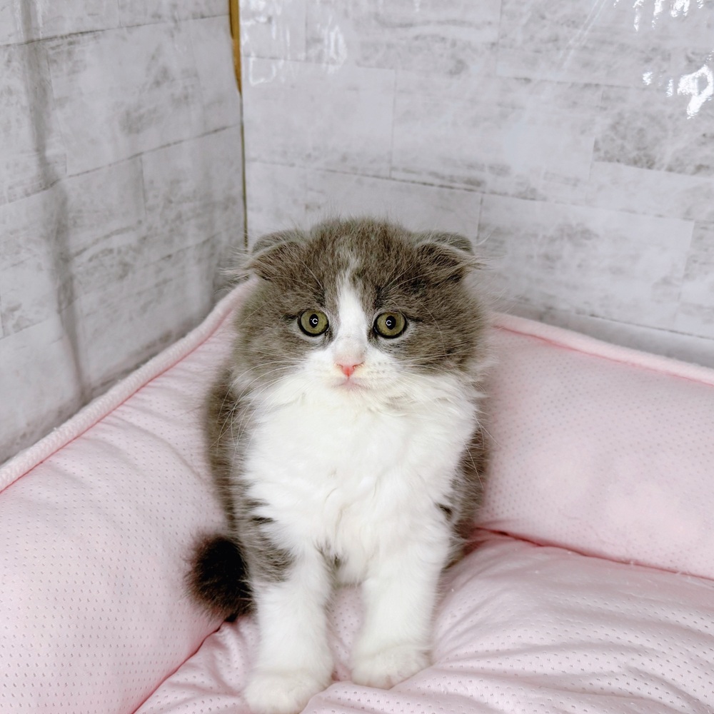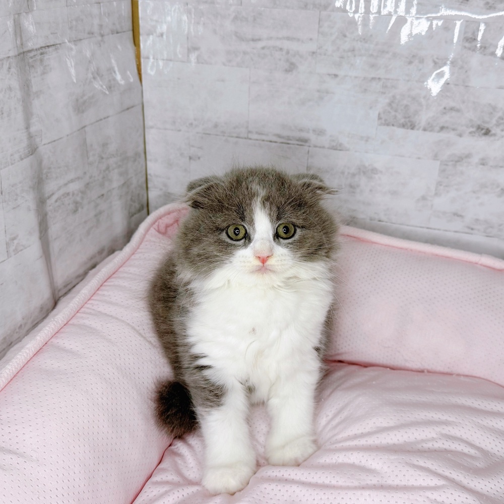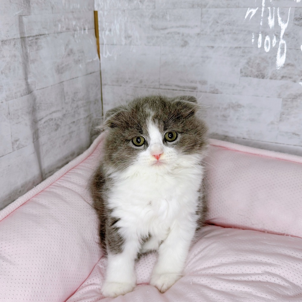 スコティッシュフォールドの子猫詳細情報愛知県/2025年8月20日生まれ/男の子/ブルータビーホワイトの子猫