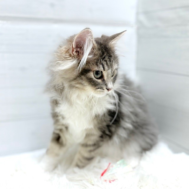 ノルウェージャンフォレストキャットの子猫詳細情報愛知県/2025年10月19日生まれ/男の子/ブルータビーホワイトの子猫