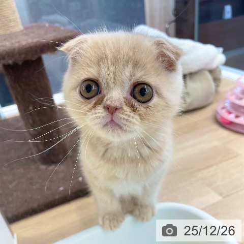 スコティッシュフォールドの子猫詳細情報徳島県/2025年10月24日生まれ/男の子/クリームタビーの子猫