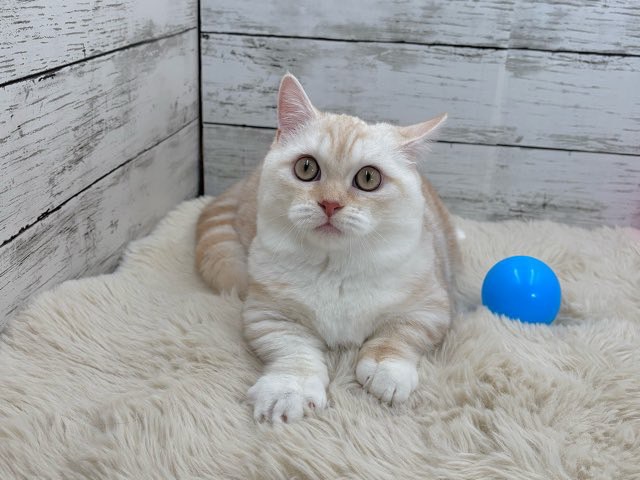 クリームタビーとホワイトのやわらかな毛色は、まるでミルクティーのよう💕