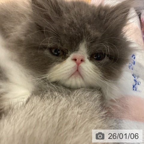 エキゾチックの子猫詳細情報京都府/2025年10月31日生まれ/男の子/ブルーホワイトの子猫