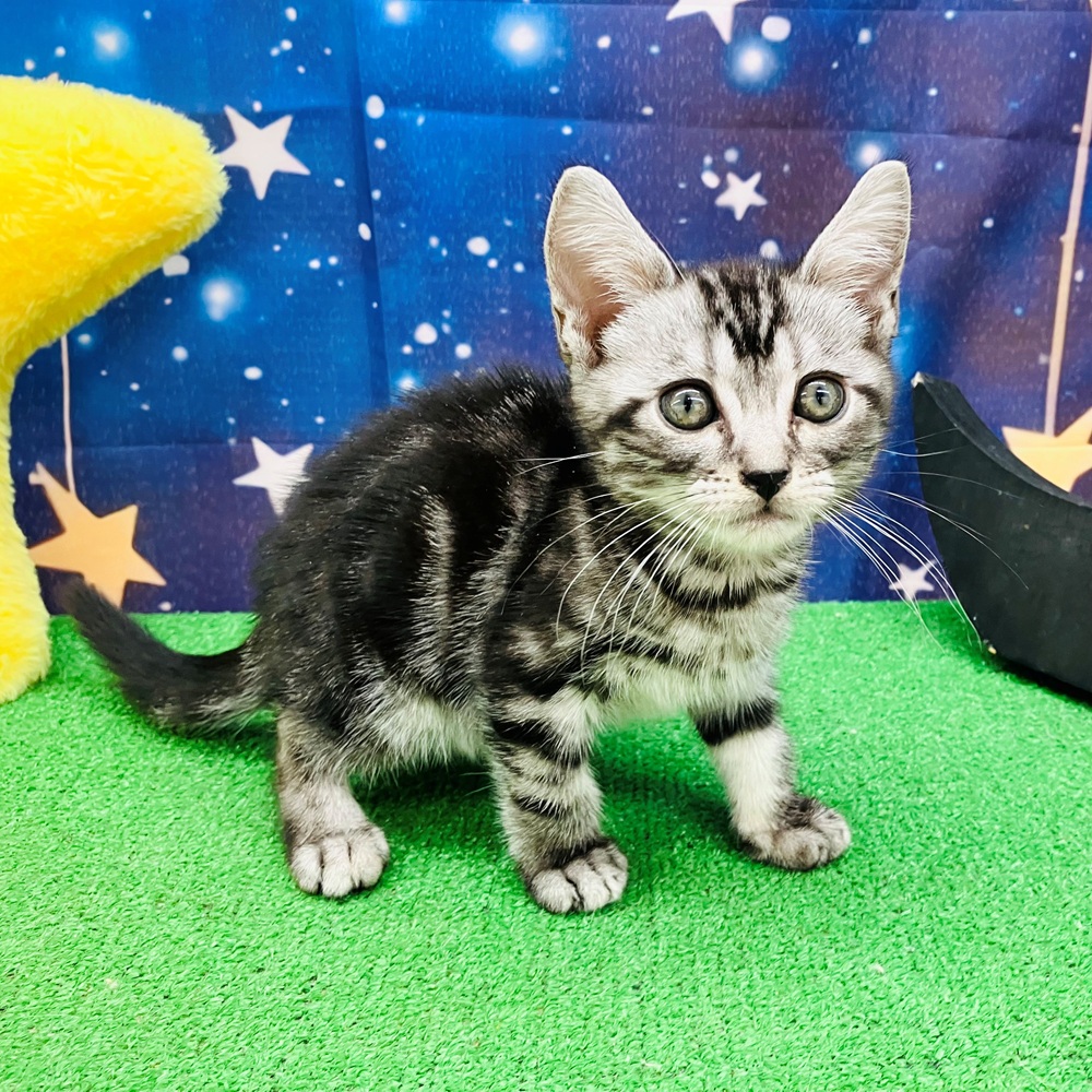 アメリカンショートヘアーの子猫詳細情報愛知県/2025年8月4日生まれ/男の子/シルバータビーの子猫