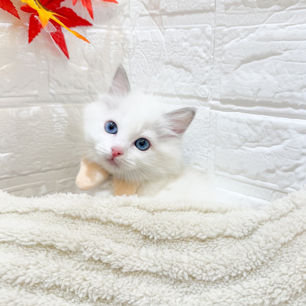 ラグドールの子猫詳細情報静岡県/2025年9月14日生まれ/女の子/ブルーポイントバイカラーの子猫