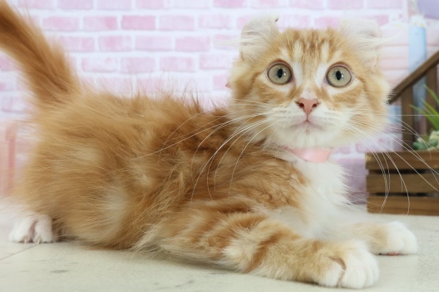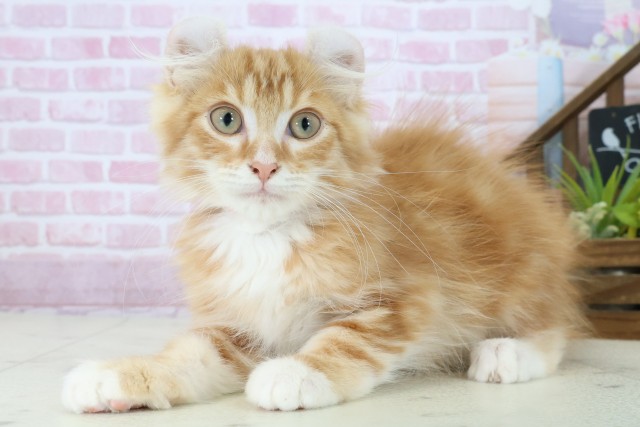アメリカンカールの子猫詳細情報福岡県/2025年7月29日生まれ/男の子/レッドタビーホワイトの子猫