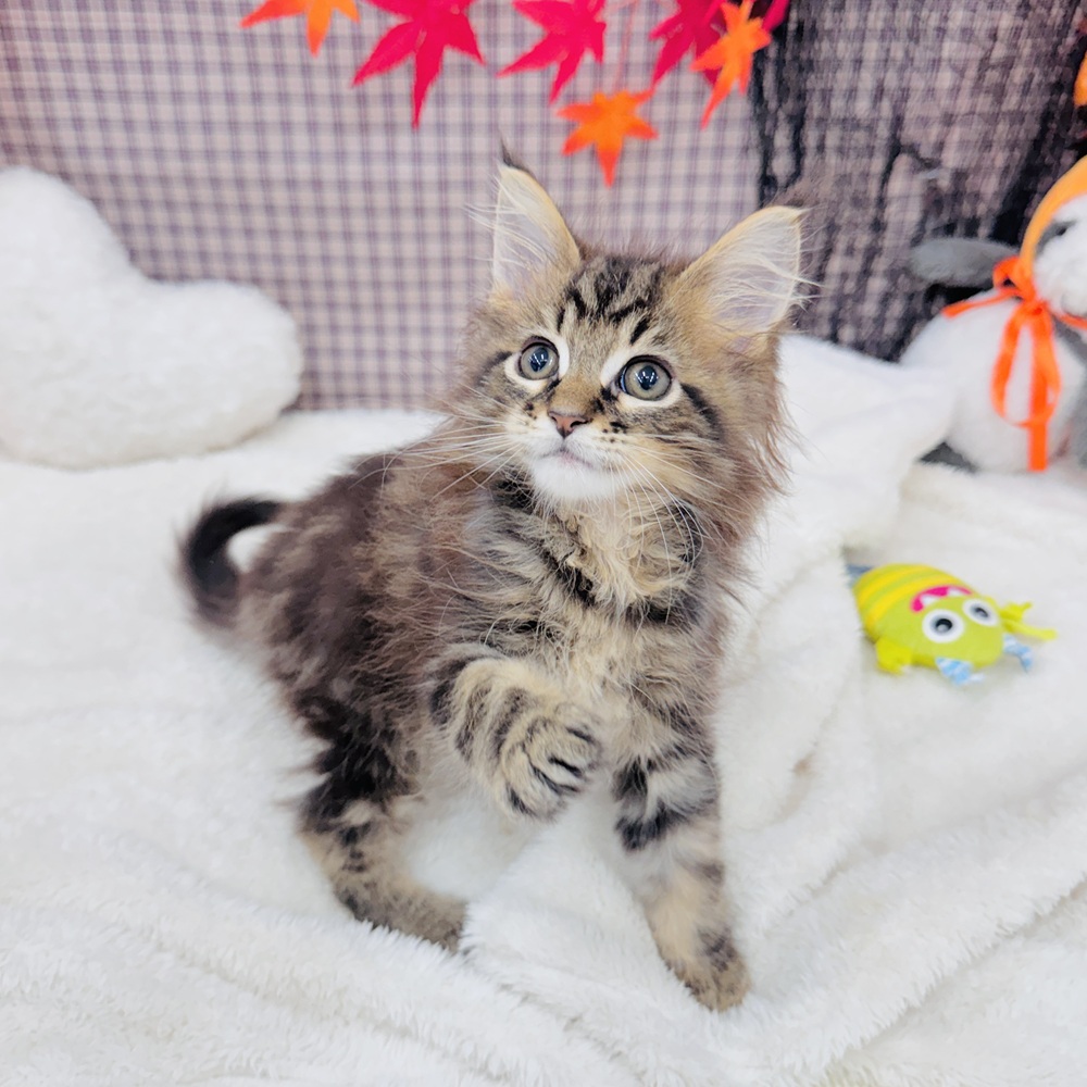 メインクーンの子猫詳細情報愛知県/2025年8月5日生まれ/男の子/ブラウンタビーの子猫
