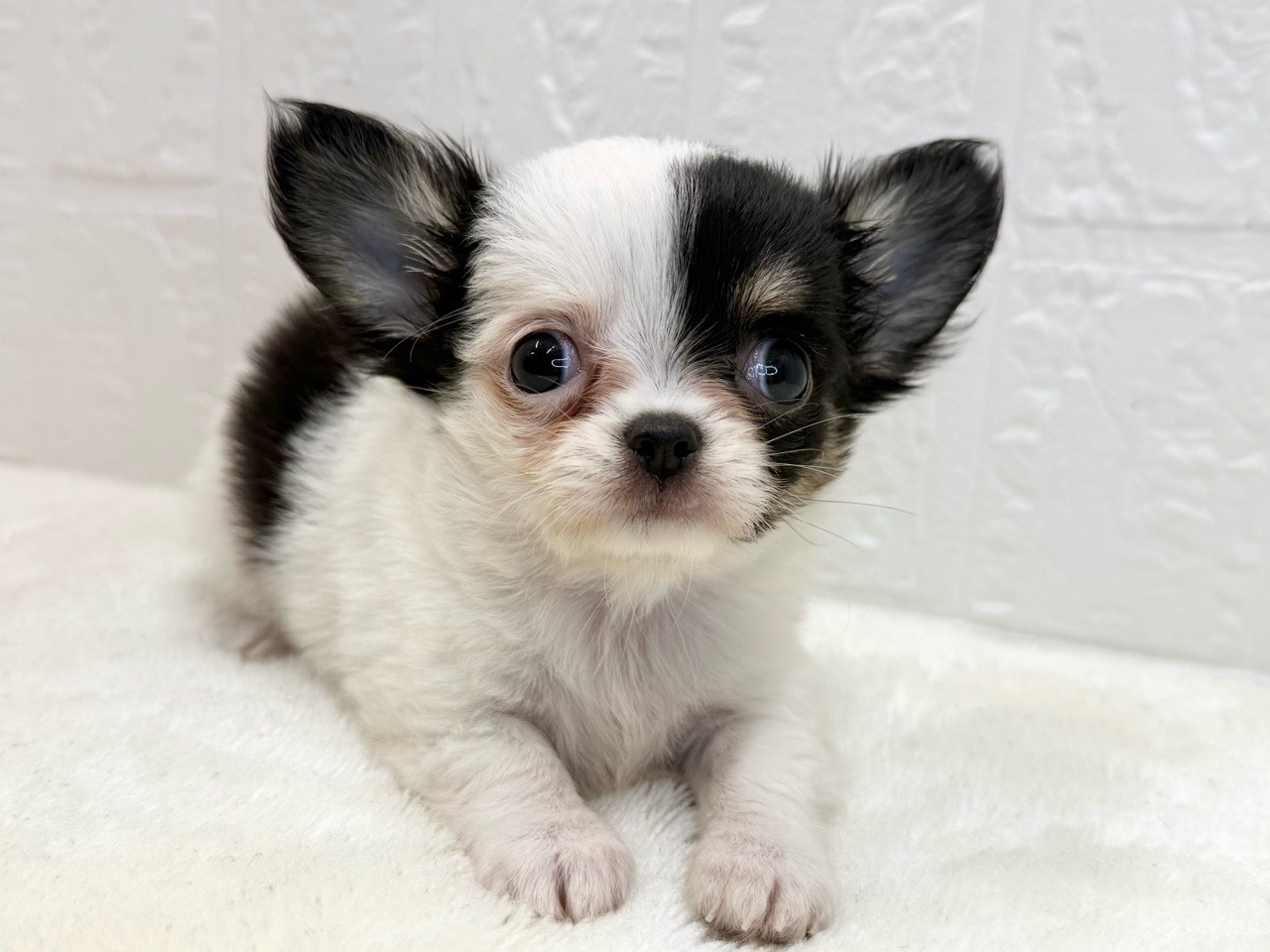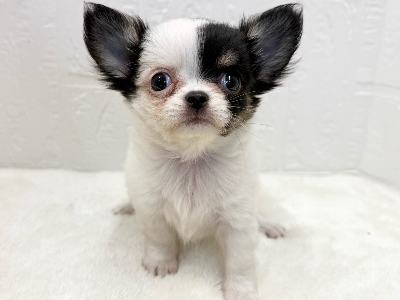チワワ(ロング)の子犬詳細情報東京都/2025年8月10日生まれ/女の子/ホワイトブラックタンの子犬