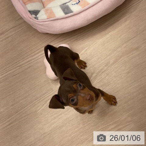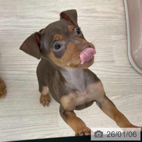 ミニチュアピンシャーの子犬詳細情報福井県/2025年11月3日生まれ/女の子/チョコレートタンの子犬