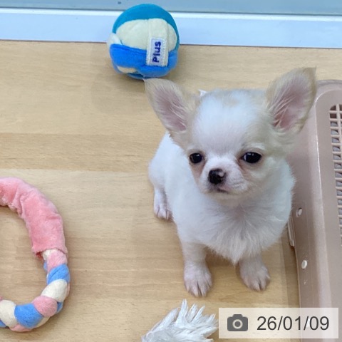 チワワ(ロング)の子犬詳細情報福岡県/2025年10月30日生まれ/男の子/ホワイトクリームの子犬