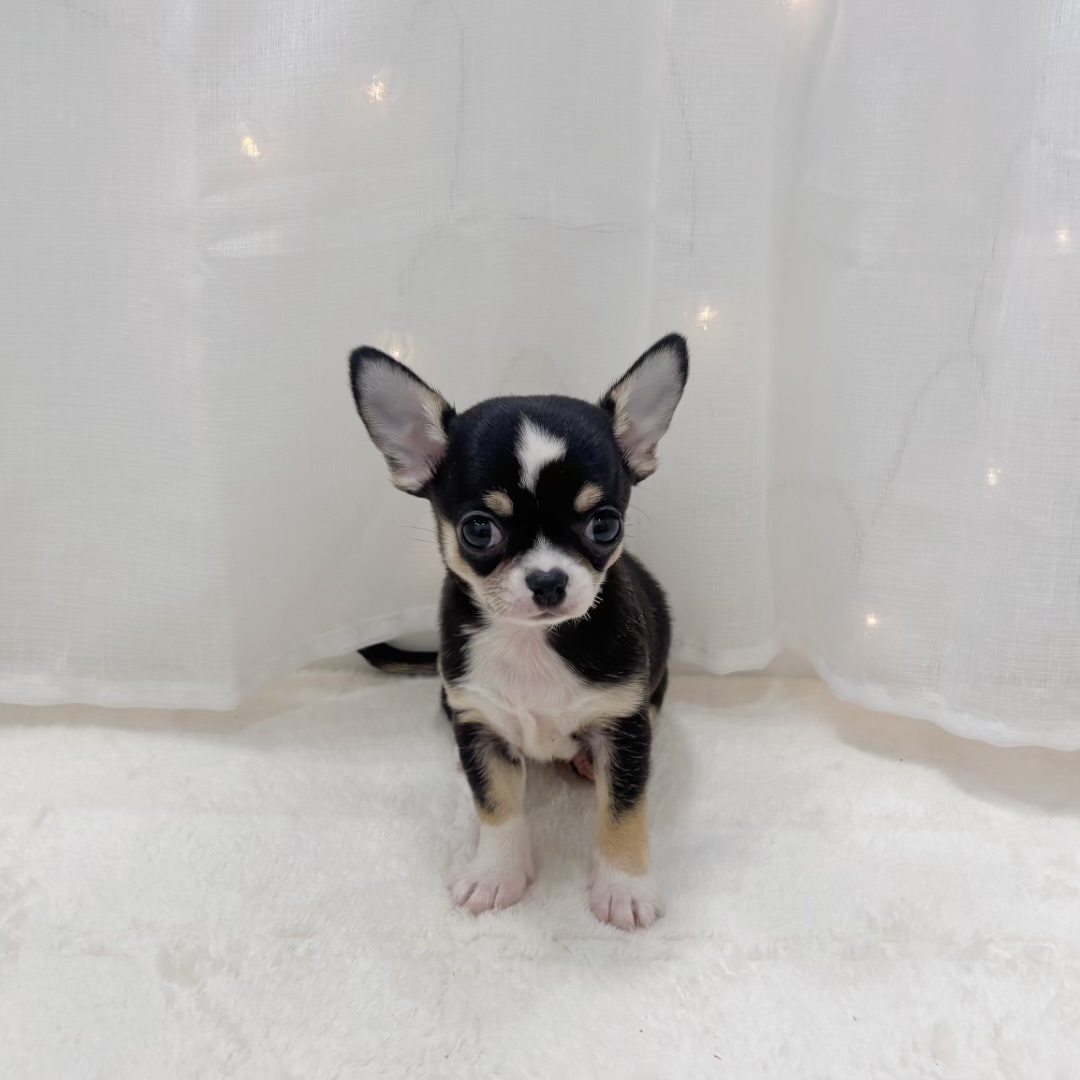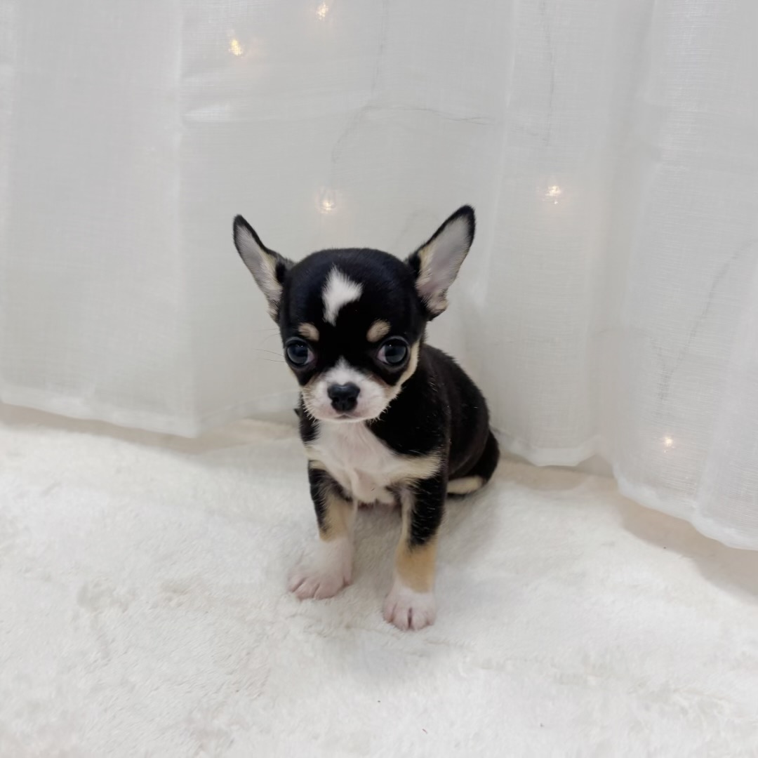 チワワ(スムース)の子犬詳細情報千葉県/2025年8月12日生まれ/男の子/ブラックタンホワイトの子犬
