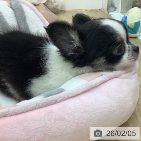 チワワ(ロング)の子犬詳細情報宮崎県/2025年12月4日生まれ/女の子/ホワイトブラックタンの子犬