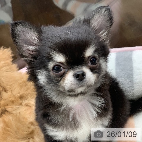 チワワ(ロング)の子犬詳細情報千葉県/2025年11月9日生まれ/男の子/ブラックタンホワイトの子犬