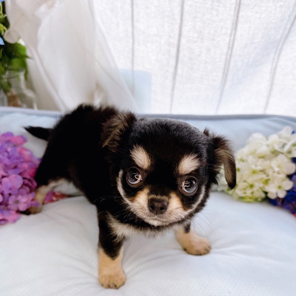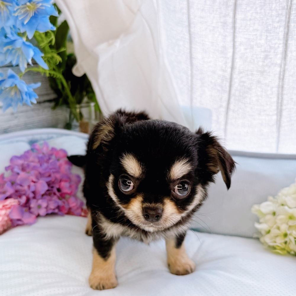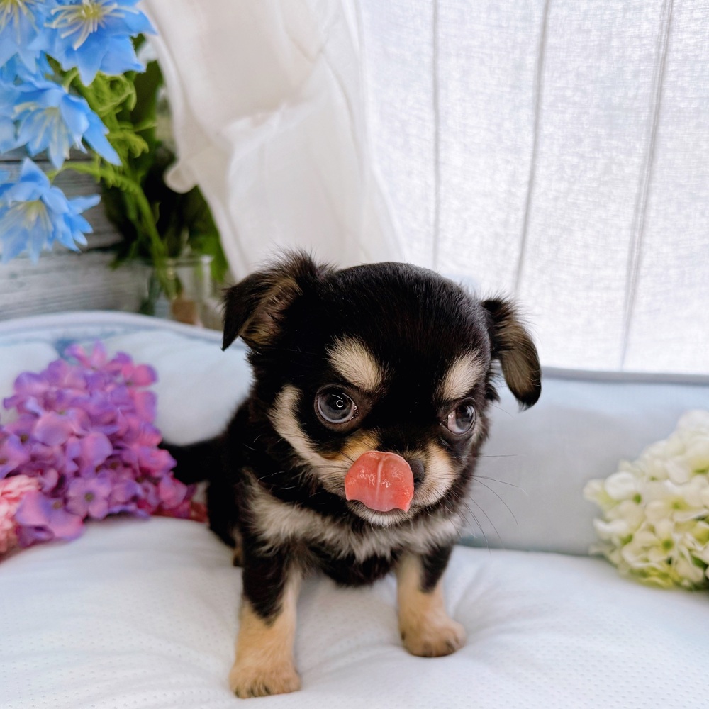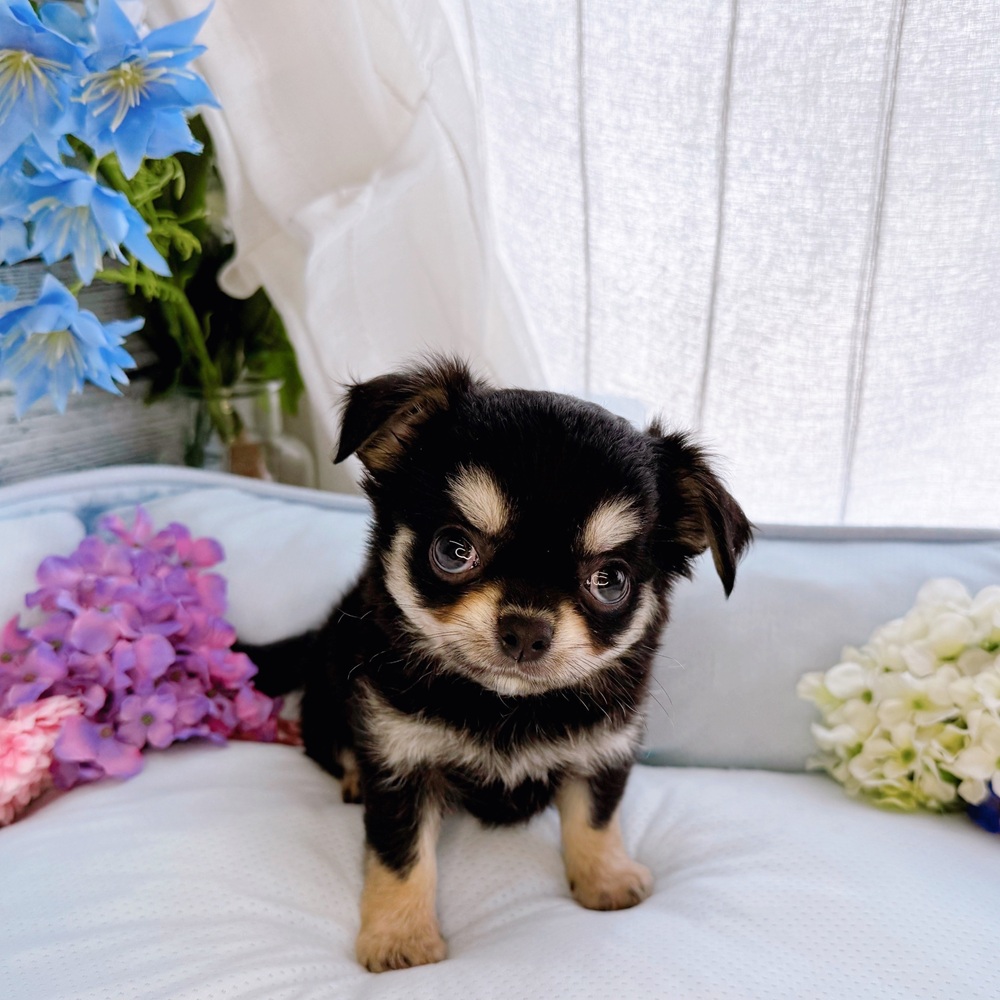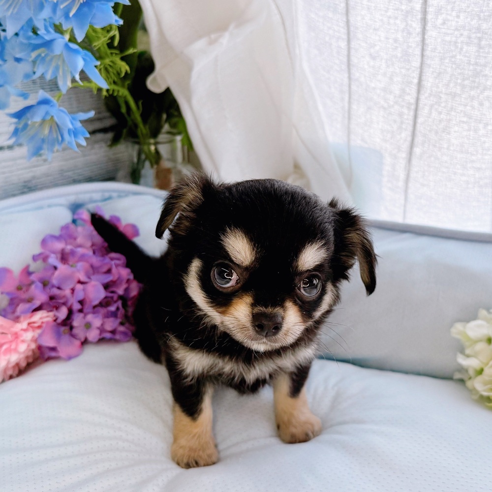 チワワ(ロング)の子犬詳細情報長野県/2025年6月23日生まれ/女の子/ブラックタンの子犬