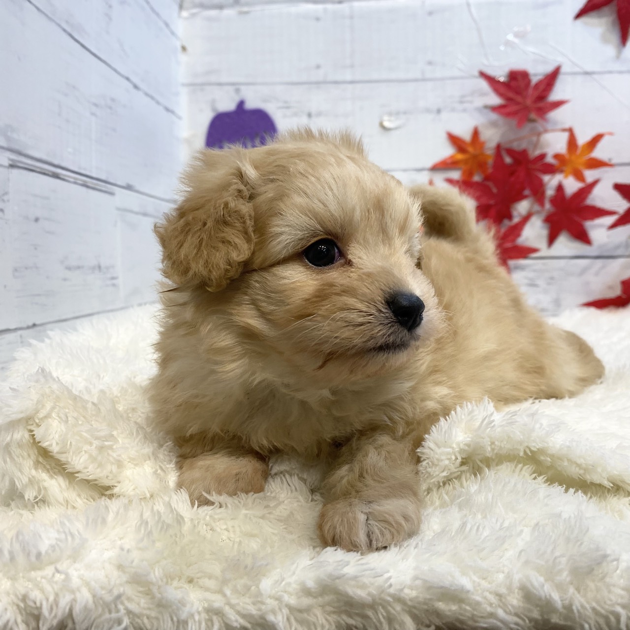 ポメプー(ポメラニアン×プードル)の子犬詳細情報長野県/2025年9月2日生まれ/男の子/アプリコットの子犬