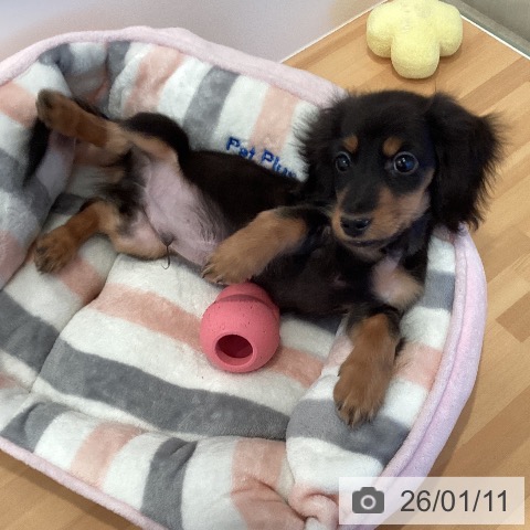 ミニチュアダックスフンド(ロング)の子犬詳細情報三重県/2025年10月12日生まれ/男の子/ブラックタンの子犬