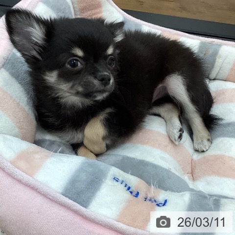 チワワ(ロング)の子犬詳細情報茨城県/2026年1月5日生まれ/男の子/ブラックタンホワイトの子犬