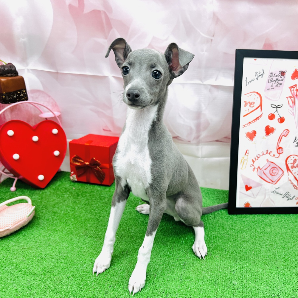 イタリアングレーハウンドの子犬詳細情報愛知県/2025年11月1日生まれ/男の子/ブルー、ホワイトマーキングの子犬