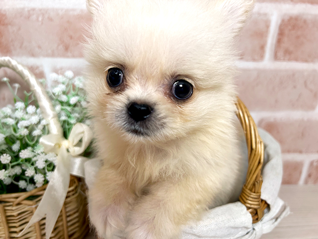 ペキポメ/ポメペキ(ペキニーズ×ポメラニアン)の子犬詳細情報千葉県/2025年6月20日生まれ/男の子/クリームホワイトの子犬