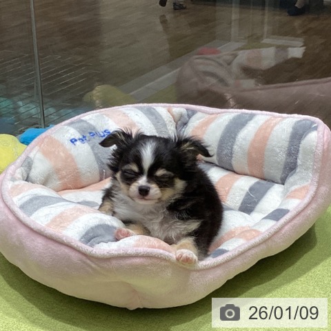 チワワ(ロング)の子犬詳細情報福岡県/2025年11月8日生まれ/男の子/ブラックタンホワイトの子犬