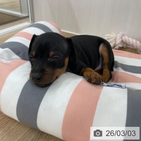 ミニチュアピンシャーの子犬詳細情報福岡県/2026年1月1日生まれ/男の子/ブラックタンの子犬